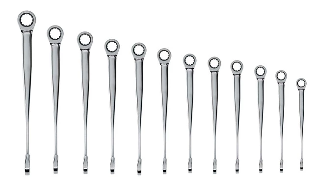 Gearwrench XL X-Beam Combination Ratcheting Wrench Metric Set contains 12 wrenches of 8 mm, 9 mm, 10 mm, 11 mm, 12 mm, 13 mm, 14 mm, 15 mm, 16 mm, 17 mm, 18 mm and 19 mm sizes. Wrench is easy to use.