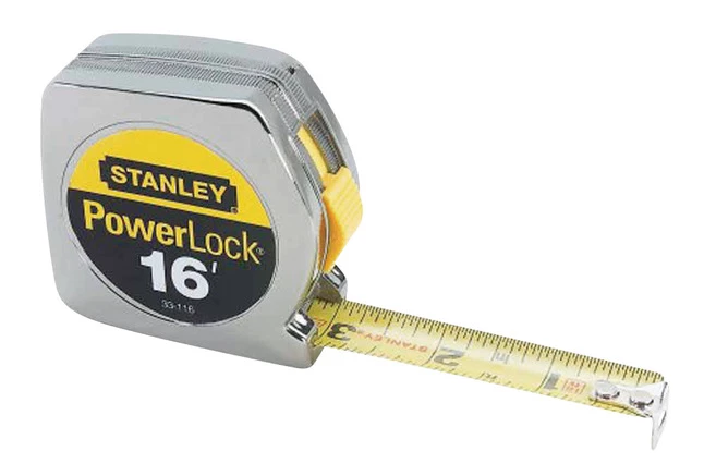 Stanley Tape Ruler measuring 4.9 x 6.9 x 0.9 inches includes 3/4 inch blades which are coated with mylar polyester film for extra durability. The positive lock does not glide during measurements and the heat treated spring endures repeated usage. The tru-zero hook acts as a pivot for drawing circles or arcs and is graduated in 16ths of an inch. The belt clip on the back side of the case offers accessibility.