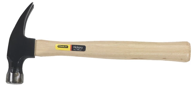 Stanley Wood Handled Rip Claw Hammer is 16 ounces and features a high carbon steel head with a fully heat treated, polished bell face. Handle is made of hickory.
